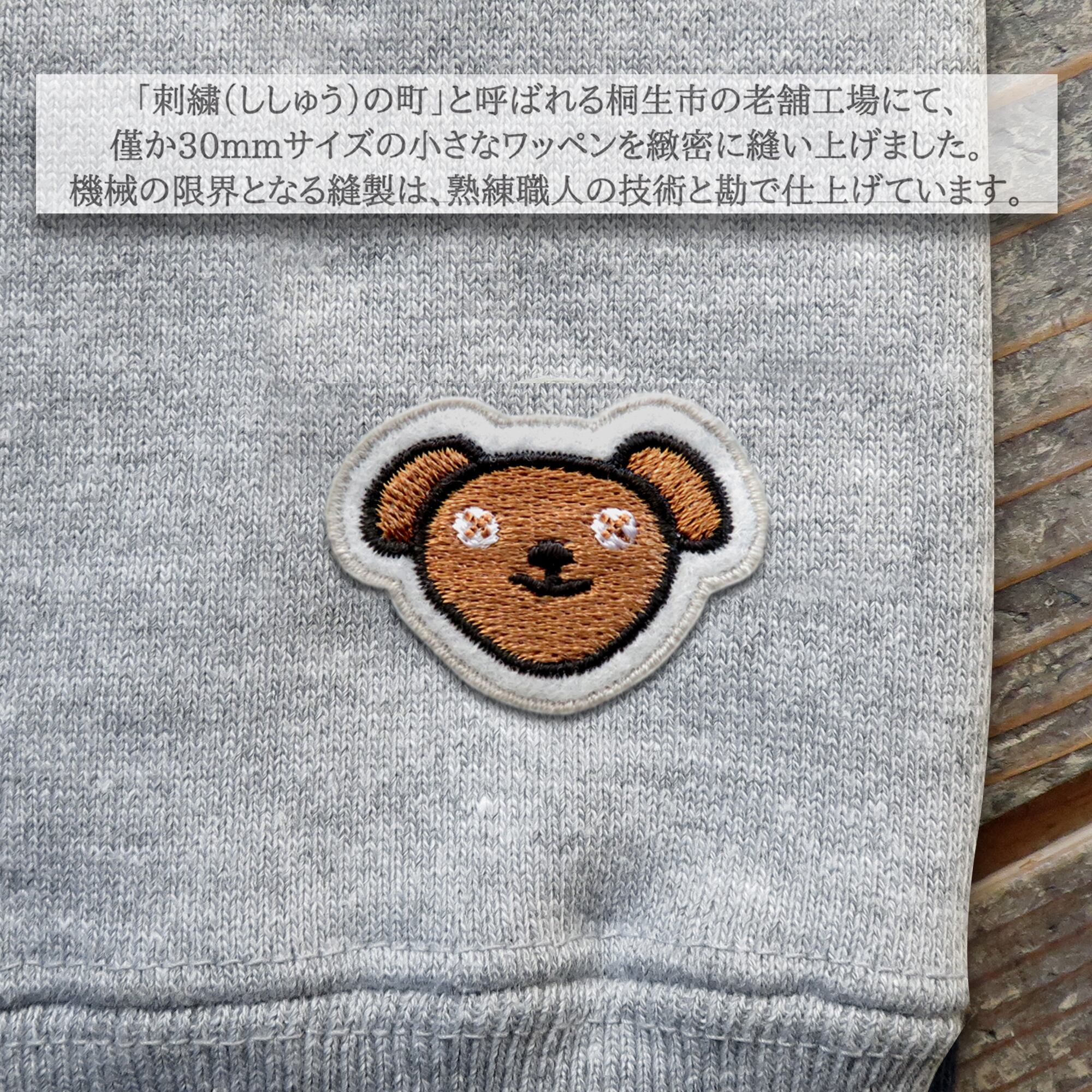 【クマのぬいぐるみTED特製ワッペン】スウェットシャツ袖部分には、MR.BEANが愛玩するクマのぬいぐるみTED(テッド)の特製ワッペンが付きます。「刺繍(ししゅう)の町」と呼ばれる群馬県桐生市の老舗工場にて、国内最高クラスの刺繍技術を駆使して小さなワッペンを緻密に縫い上げました。