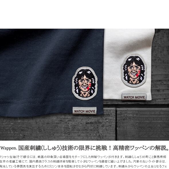 【ワッペン解説】映画『クレイジーモンキー/笑拳』の印象深い最終対決シーンより。Tシャツ左袖(そで)部分には、宿敵「鉄の爪」の猛攻で傷付き満身創痍なジャッキー・チェンの表情を描いた「ジャッキーダメージフェイス/傷顔・特製ワッペン」が付きます。刺繍(ししゅう)の町こと群馬県桐生市の老舗工場にて、国内最高クラスの刺繍技術を駆使して小さなワッペンを緻密に縫い上げました。刺繍糸からワッペンの土台となるフェルト生地に至るまで全てJETLINK特注品を使用しています。小さいパーツながらも日本の職人技術が誇る「メイド・イン・ジャパン」の逸品をお楽しみください。