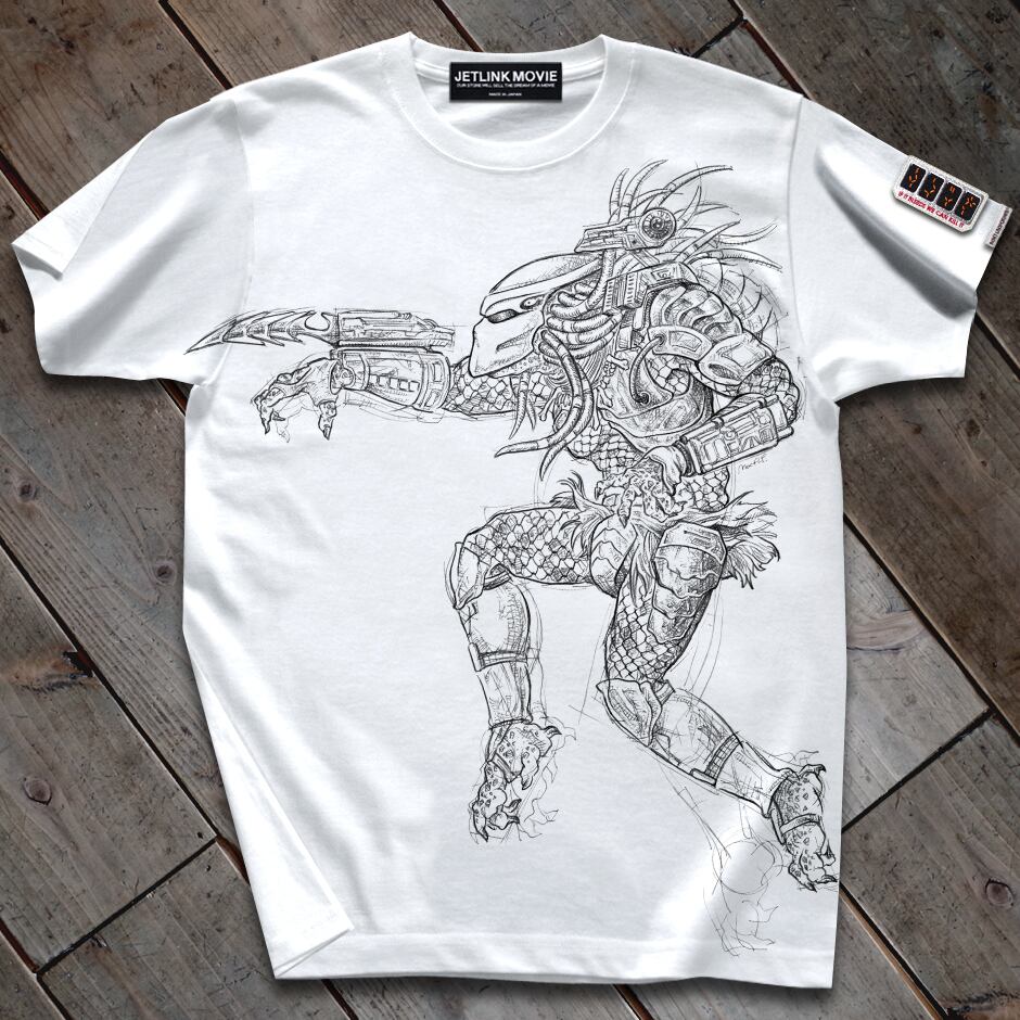 【商品解説】1987年に公開されたジョン・マクティアナン監督&アーノルド・シュワルツェネッガー主演の名作SFアクション映画『プレデター』PREDATOR×JETLINKが繋がります。映画一作目に登場した地球外生命体プレデターをJELINK独自のフィルターを通してディテール細部に至るまで徹底的に描き込んだ高精密画として仕上げました。左袖(そで)部分には劇中に登場した「コンピューターガントレット」(自爆装置)をデザインした特製の高精密ワッペンがキラリと輝きます。SF映画に造詣が深いデザイナーのこだわりとセンスを反映させて、既存の映画『プレデター』を題材にしたTシャツには無かったJETLINKならではの洗練されたデザインに仕上げています。かつては映画好きの少年だった僕たち世代へ...現時点で可能な限りの贅沢を極めた大人の逸品をお楽しみください。